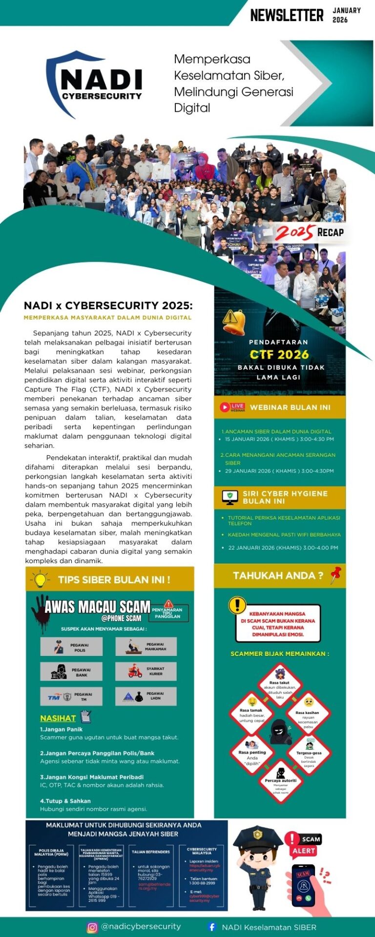 Tarikh : 15 Januari 2026Masa : 02.30 Pagi– 04.30 PetangLokasi : Pusat Sebaran Maklumat Nasional (NADI) GerikPeserta : Komuniti TujuanProgram Cybersecurity ini dilaksanakan bagi meningkatkan kesedaran peserta terhadap ancaman keselamatan siber yang semakin meningkat dalam […]