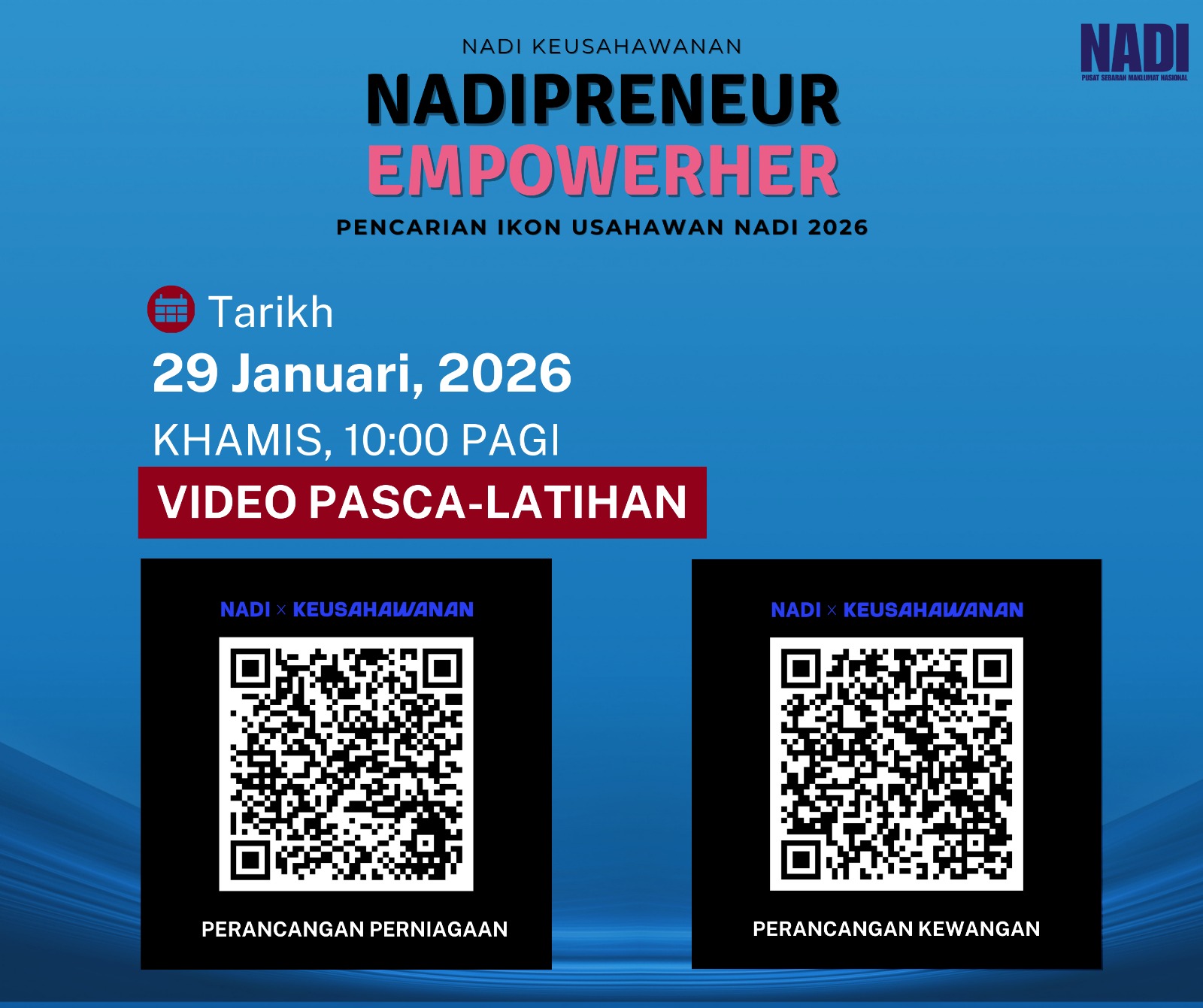 Tarikh : 29 Januari 2026Masa : 10.30 Pagi– 12.00 TengahariLokasi : Pusat Sebaran Maklumat Nasional (NADI) GerikPeserta : Komuniti TujuanProgram NADI Preneur / EmpowerHer ini dilaksanakan sebagai sokongan pasca latihan bagi membantu peserta memahami langkah seterusnya […]